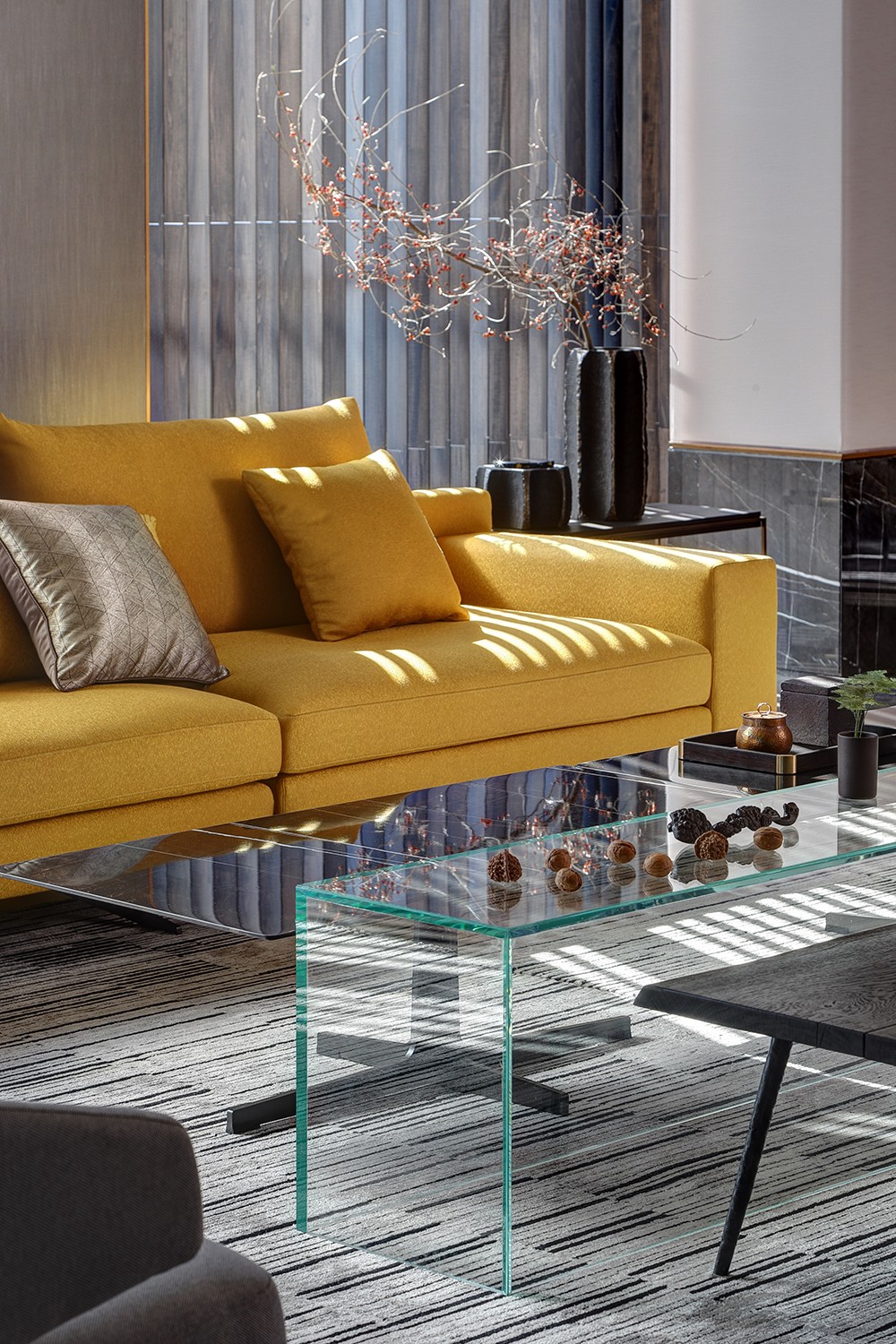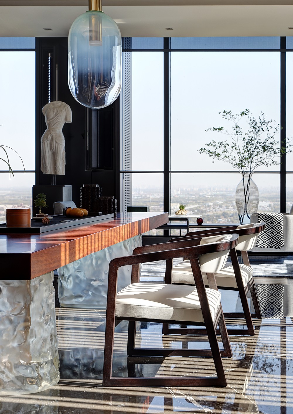 当木、石、皮、布、金属、瓷器,各种元素遇上现代智慧,居家空间就成为了人们身心与万物归一的精神属地。这即是达美中心“万物·云之云安”项目的设计初衷,更十分契合著名家具品牌CAMERICH(锐驰)“守本归真、至简至美”的理念。