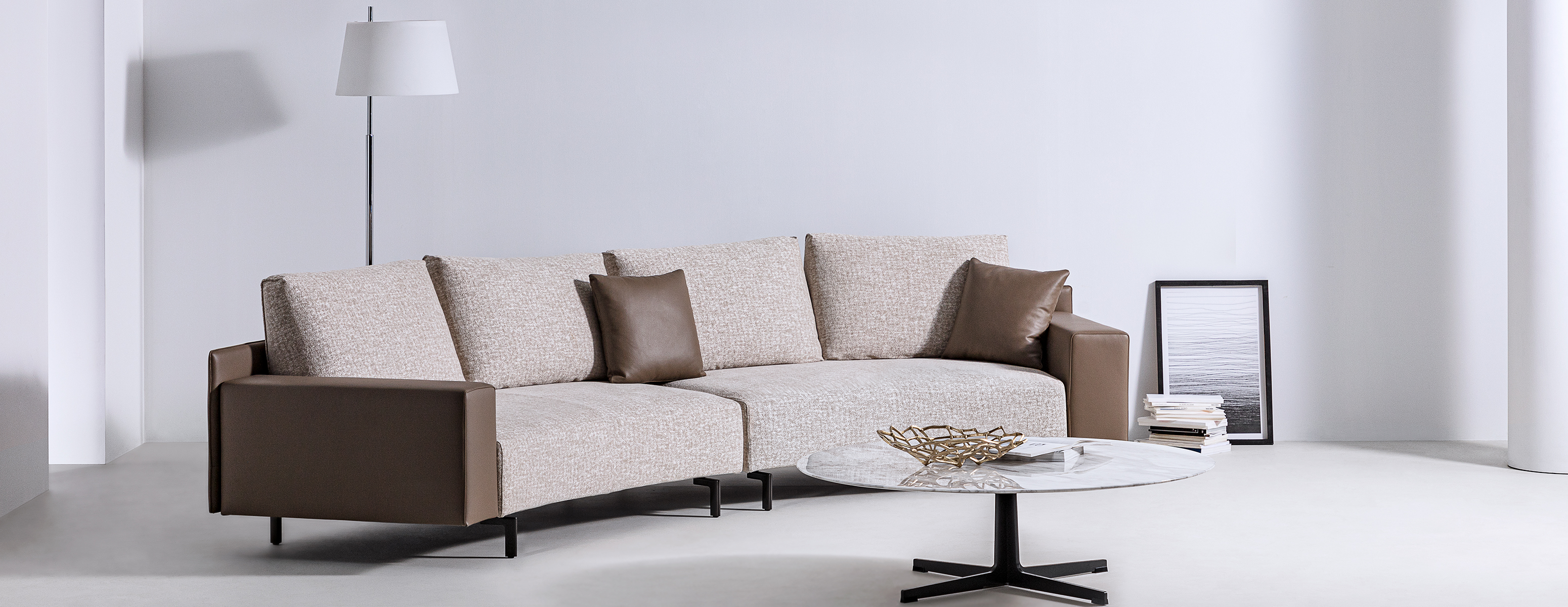 设计灵感来源于中国的甲胄元素,融合了中国传统文化和西方设计理念。方正、挺拔的外框,宽窄不同的扶手,搭配造型独特的靠垫和整体设计的坐垫,精致与舒适兼备。